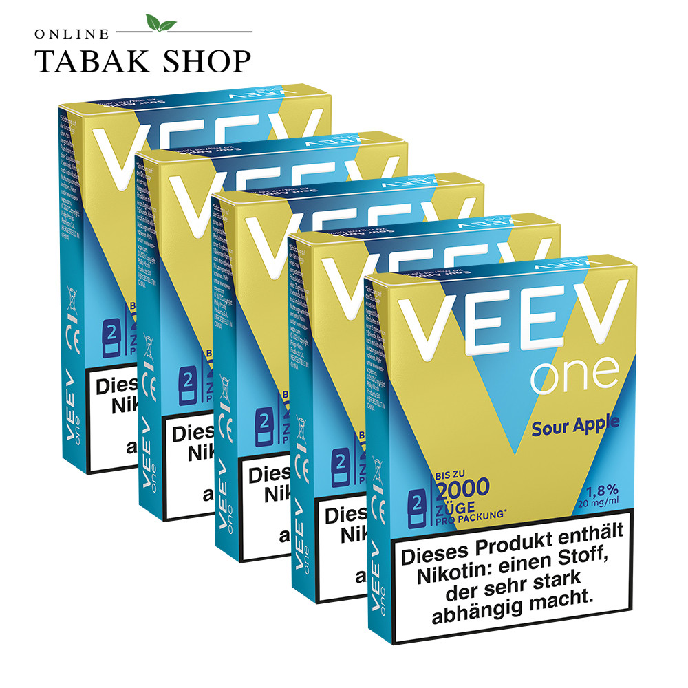 Das VEEV Pods Sour Apple 5er Vorteilspack ist ideal für alle, die ein fruchtig-saures Aroma mit erfrischendem Charakter bevorzugen. Das Bundle umfasst 5 Einzelpackungen mit jeweils 2 Pods – insgesamt also 10 Sour-Apple-Pods für den regelmäßigen Gebrauch.