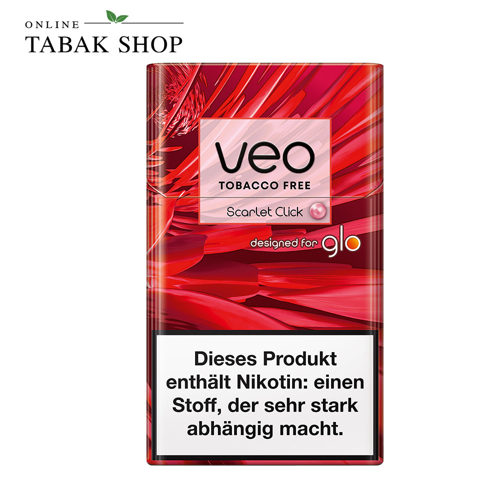 Die VEO Scarlet Click Sticks sind die fruchtig-süße Beeren-Variante der tabakfreien VEO-Reihe für glo. Die Sticks basieren auf einem pflanzlichen Rooibos-Substrat statt Tabak und werden im glo Gerät erhitzt, nicht verbrannt. So entsteht ein aromatischer Dampf ohne Asche.