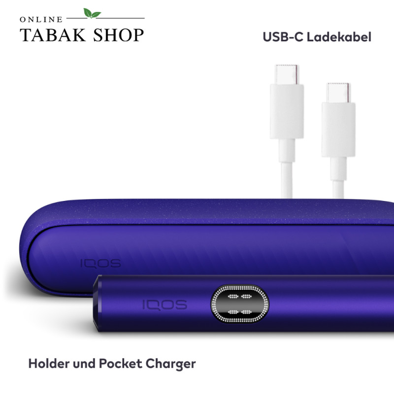 - Lieferumfang: 1x IQOS ILUMA i Pocket Charger, 1x Holder in der Trendfarbe Electric Purple, 1x USB-C-Ladekabel, Anleitung & Garantiekarte