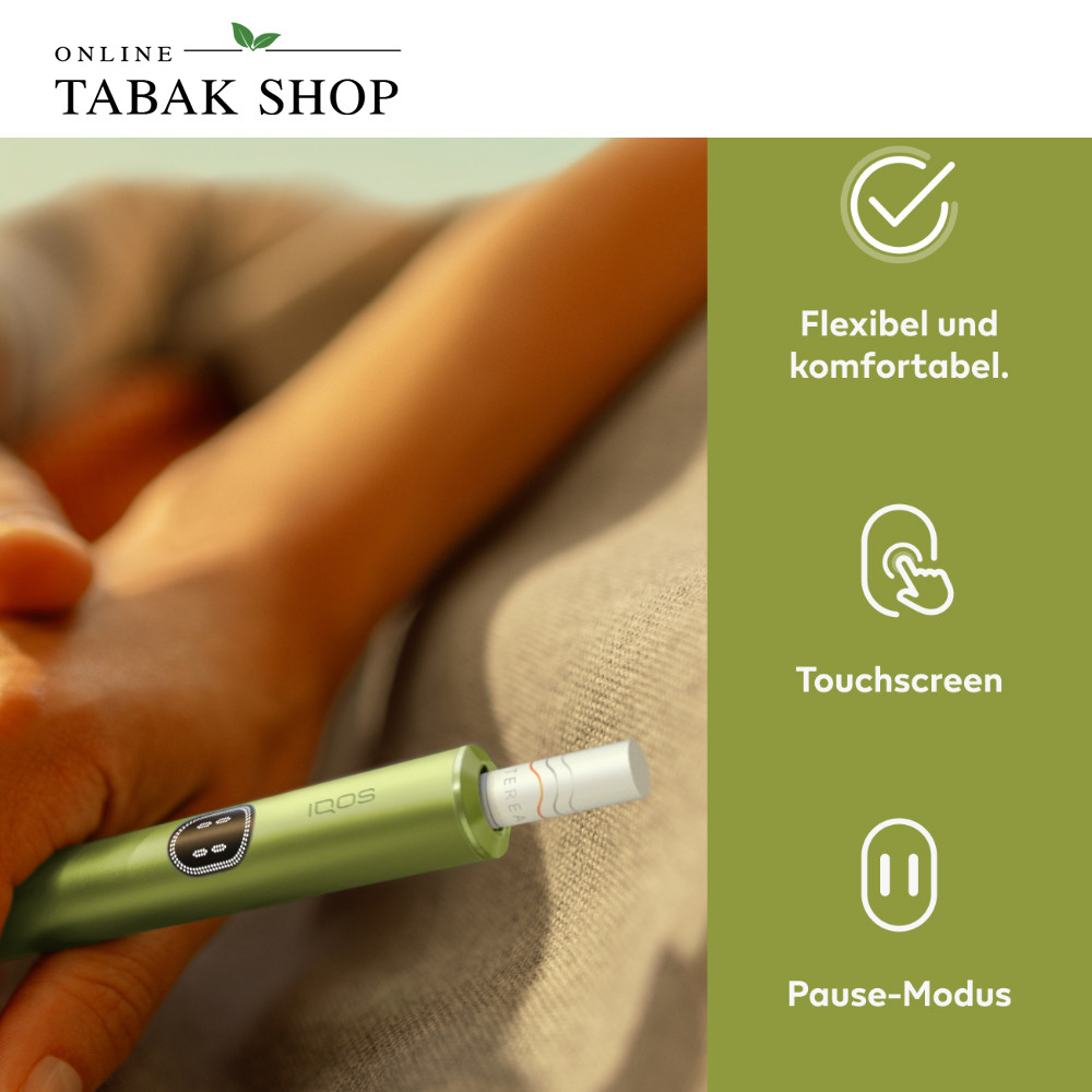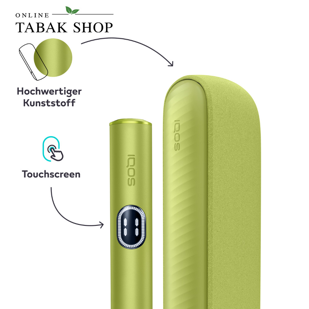 Das IQOS ILUMA i im frühlingshaften Leaf Green ist die fortschrittlichste Generation der ILUMA Serie. Es kombiniert die bewährte Smartcore-Induktionstechnologie (ohne Rauch, Asche oder Reinigung) mit einem völlig neuen, zweiteiligen Premium-Design aus Pocket Charger und Holder. Das Highlight: Über das integrierte Touch-Display am Holder steuern Sie smarte Funktionen wie den neuen Pause-Modus oder die Akkuleistung flexibel selbst. Perfekt für alle, die maximale Kontrolle, erstklassiges Design und ein individuell anpassbares Geschmackserlebnis suchen.