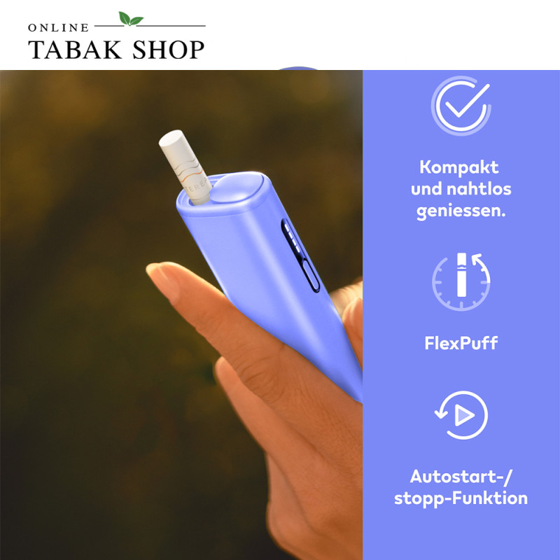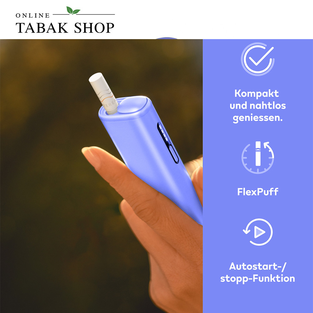Der IQOS ILUMA i ONE in der kühlen, matten Trendfarbe Digital Violet ist das kompakte Format der ILUMA i Serie. Er verbindet fortschrittliche Smartcore-Induktionstechnologie mit maximaler Mobilität. Das bedeutet für Sie: echter Tabakgeschmack, der gleichmäßig von innen erhitzt wird – komplett ohne Rauch, Asche oder lästiges Reinigen. Dank integriertem Akku für bis zu 20 Nutzungen und smarten Funktionen wie Autostart und Zuganpassung ist dieses All-in-One-Gerät der perfekte, wartungsfreie Begleiter für unterwegs.