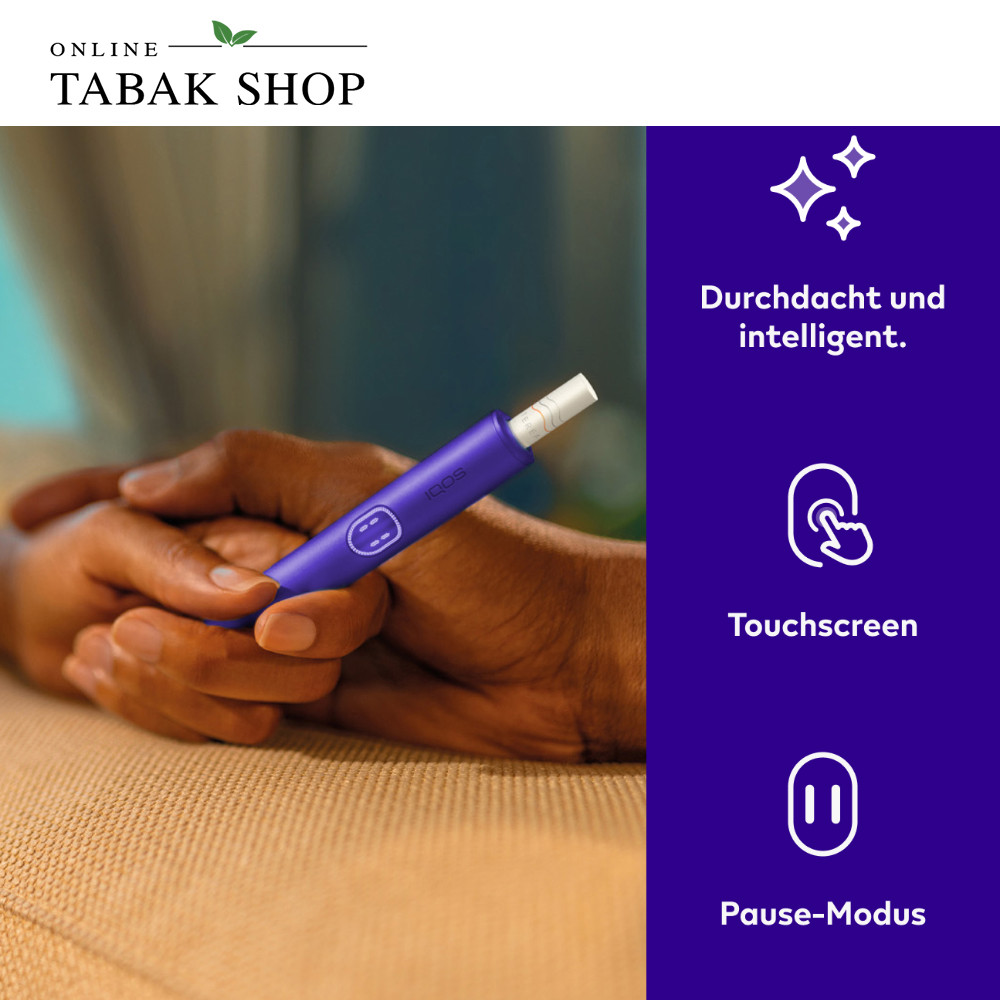 Das IQOS ILUMA i Prime in der Trendfarbe Electric Purple ist das Premium-Modell der aktuellen ILUMA i Generation. Der Tabakerhitzer kombiniert die innovative SMARTCORE INDUCTION SYSTEM™ Technologie mit einem besonders hochwertigen Design. Dank Induktionstechnologie wird Tabak erhitzt statt verbrannt – dadurch entstehen kein Rauch, keine Asche und in der Regel kein Reinigungsaufwand.