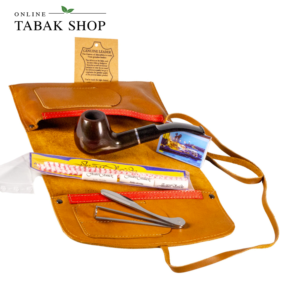 JEAN CLAUDE Pfeifen-Einsteigerset Leder-Rollbeutel – Pfeife mit gebogenem Mundstück + Zubehör