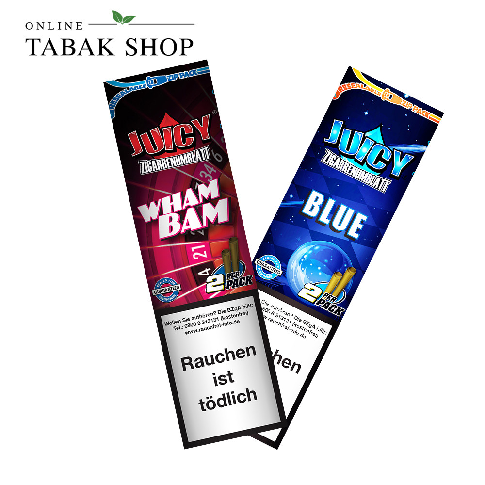 Juicy Blunts aus Tabak sind in einer wiederverschließbaren Verpackung erhältlich. In dieser befinden sich 2 Blunts.
