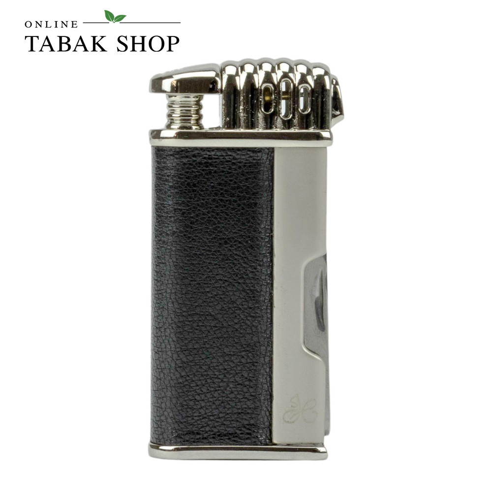 Das Jean Claude Pfeifenfeuerzeug „Kent“ ist ein elegantes Zubehör für Pfeifenraucher: Chrom poliert trifft auf schwarze Lederoptik. Die Piezo-Zündung sorgt für komfortables Zünden, während die seitliche (schräg austretende) Flamme das Anzünden im Pfeifenkopf erleichtert. Ein echtes Plus ist das integrierte Pfeifenbesteck, das du unterwegs immer griffbereit hast.