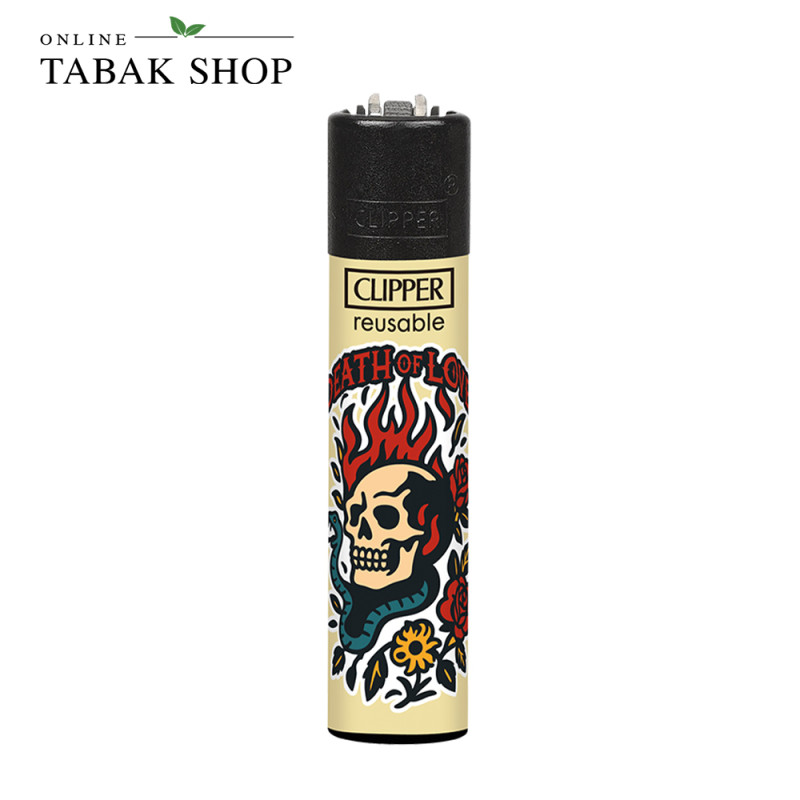 4 Original Clipper Feuerzeuge New School New Skulls mit Vintage Tattoo Design - im klassischen Clipper-Format – perfekt als Set für Partys, den Alltag oder zum Sammeln.