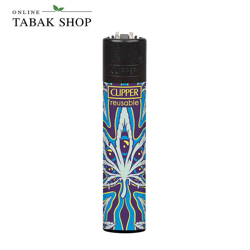 Clipper Classic Feuerzeuge mit farbintensivem Psychedelic-Leaf-Design in blau.