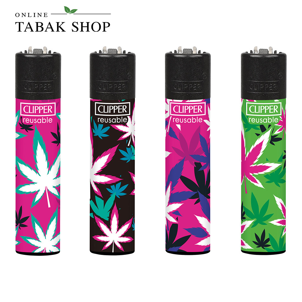 Praktisches 4er-Set Clipper Standard Feuerzeuge im Pink-Leaves-Design. Farblich sortiert – ideal als Vorrat oder für unterwegs.