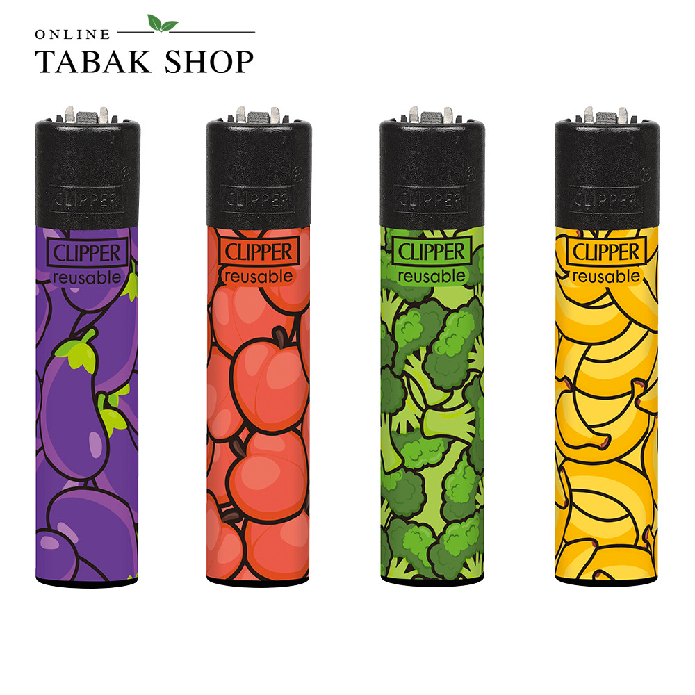 Das Clipper Veggie Pattern überzeugt mit farbenfrohen, detailreichen Gemüse-/und Obst-Motiven, die Spaß, Frische und Individualität ausstrahlen. Die langlebigen Clipper-Feuerzeuge sind praktisch, nachfüllbar und ideal für unterwegs.