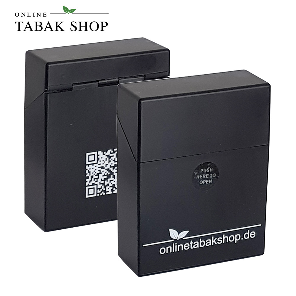 Schwarzes Zigarettenetui mit Springdeckel und Pushfunktion für bis zu 25 Zigaretten
