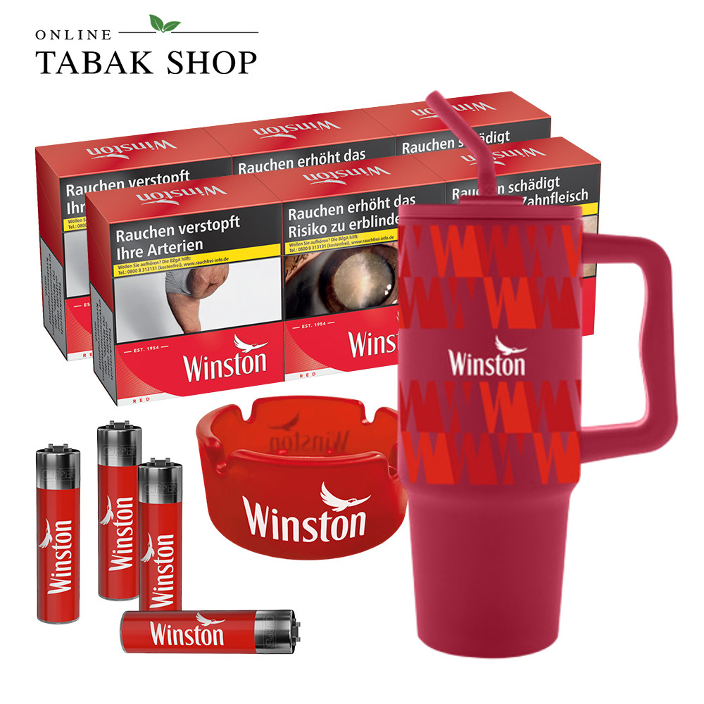 Winston Rot 6XL (6 x 60er) + 4 Clipper Feuerzeuge + Aschenbecher + Trinkbecher Bundle Offer