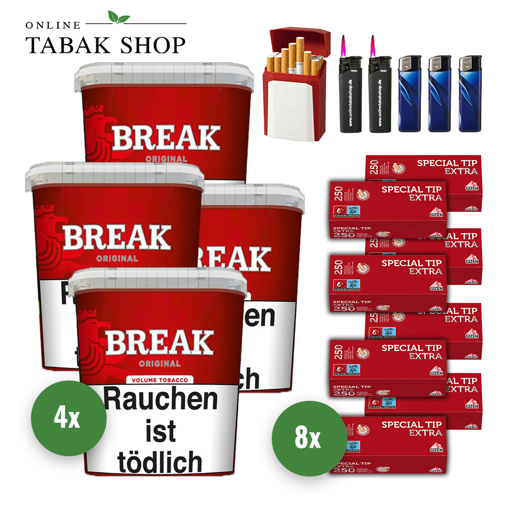 BREAK Tabak Rot (4 x 185g) + 2000 GIZEH Special Tip Extra Hülsen Sparpaket
