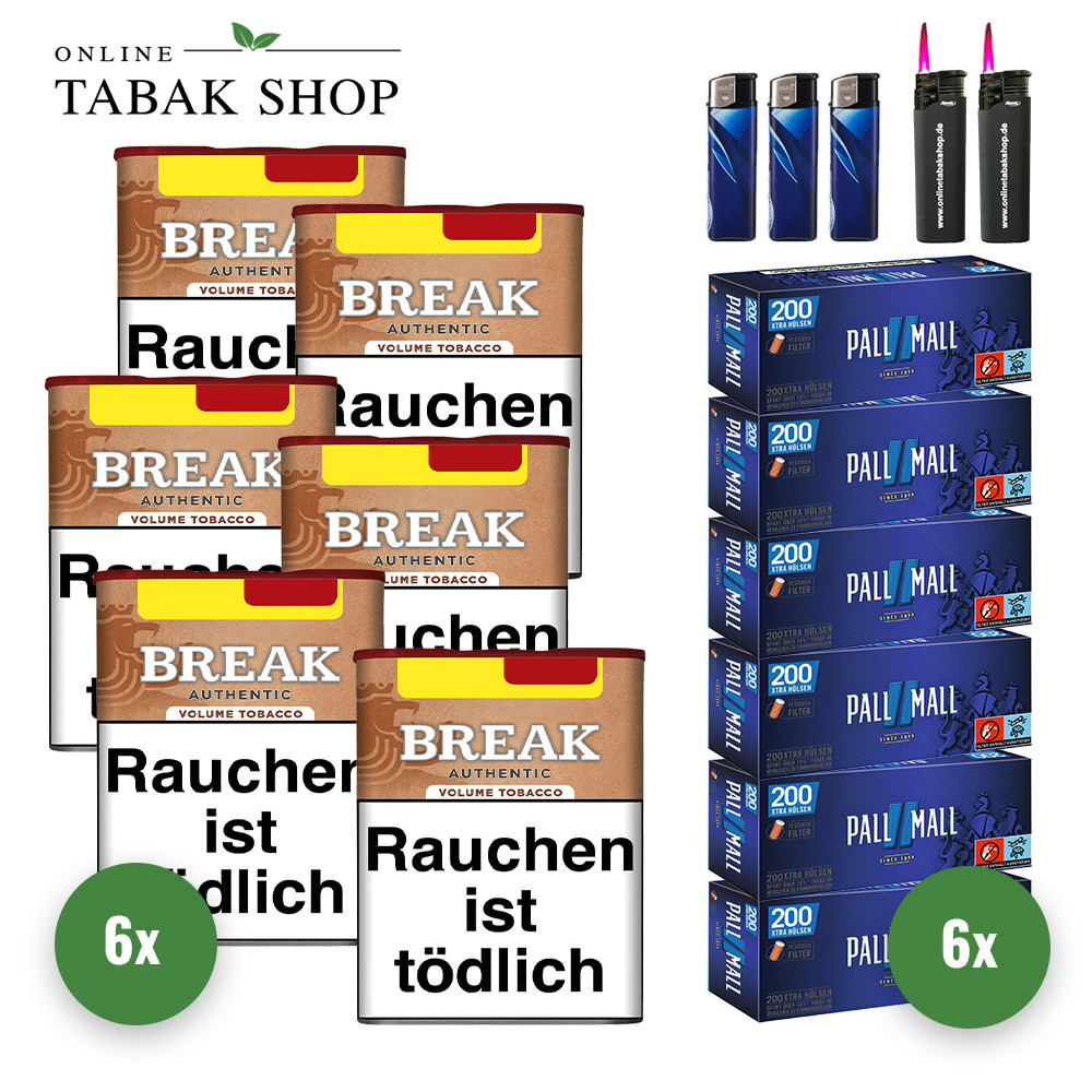 Break Authentic Volumentabak (6 x 57g) + Gizeh Full Flavor Extra Hülsen Sparpaket