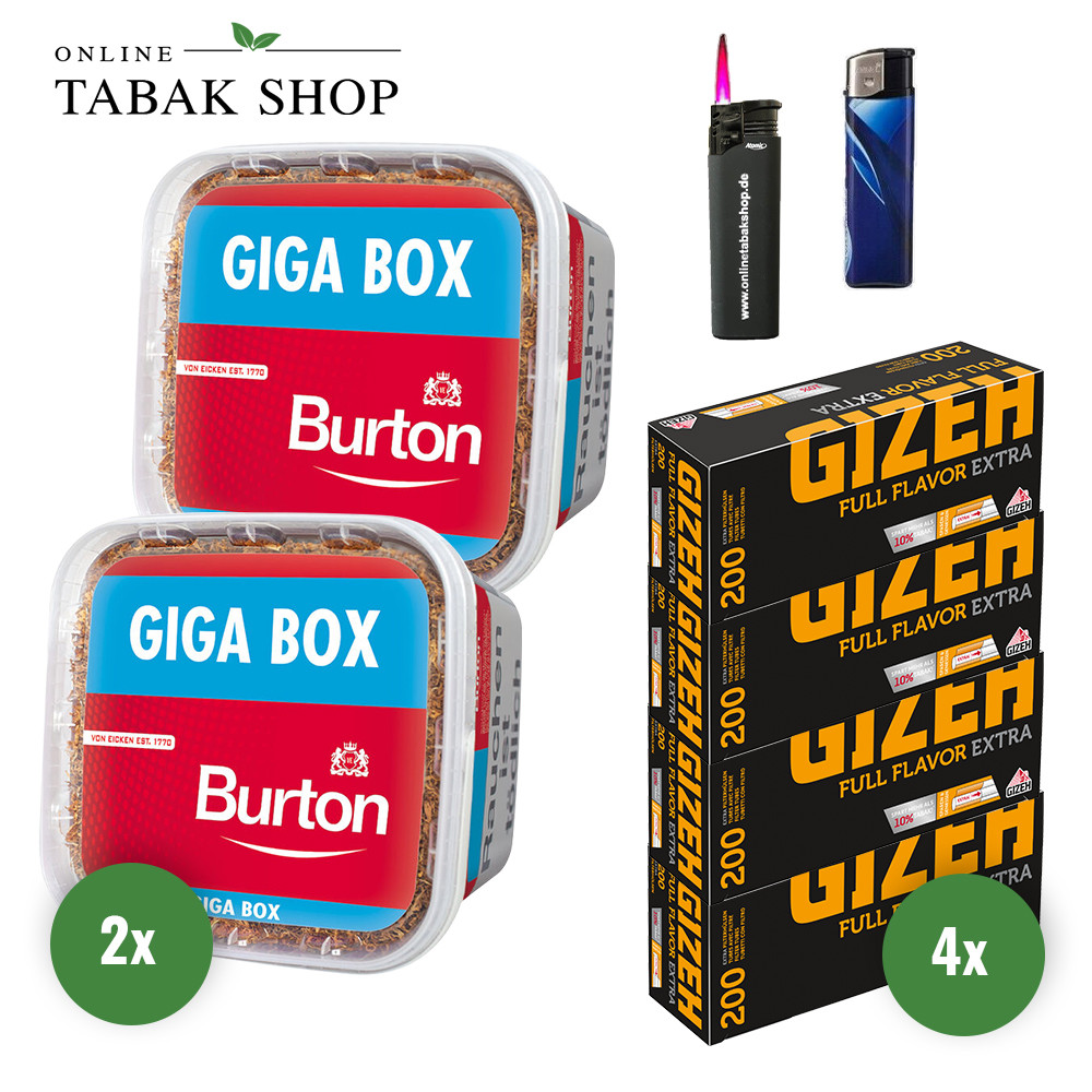 Burton Volumentabak (2 x 400g) + 1.000 Gizeh Full Flavor Extra Hülsen Sparpaket