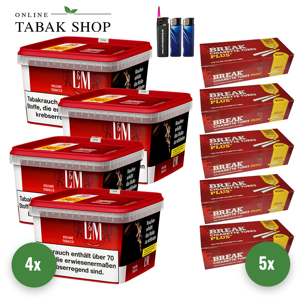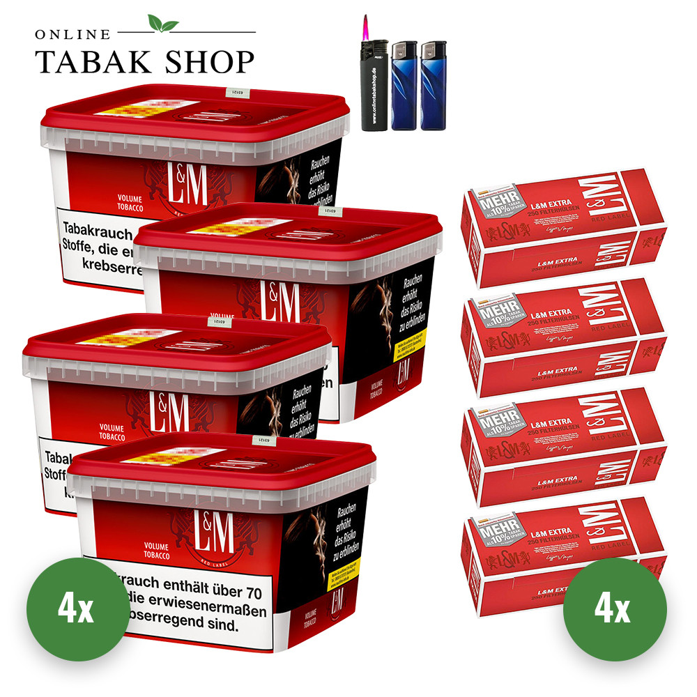 L & M Tabak Rot Mega (4 x 120g) + 1000 Hülsen Sparpaket