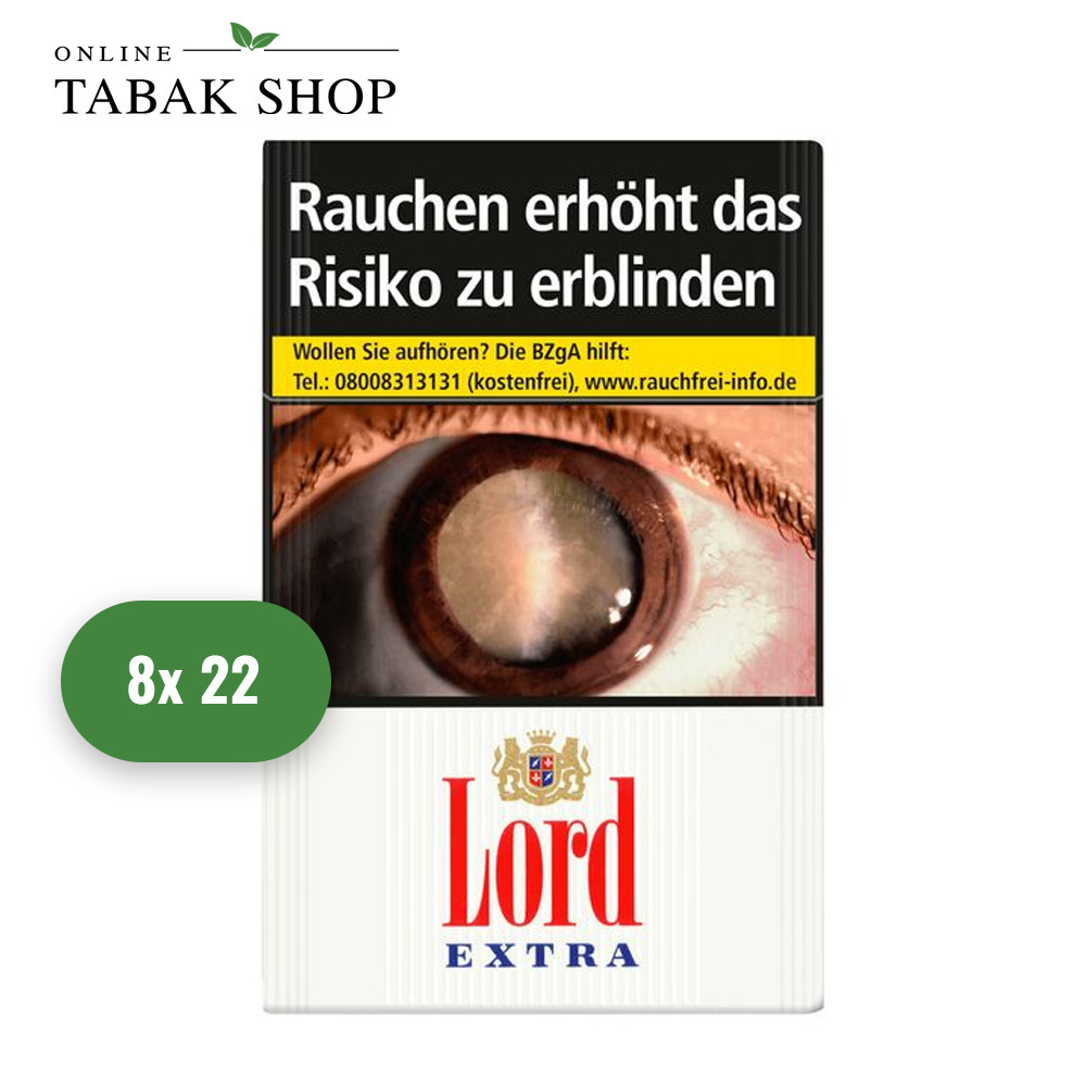 Die Lord Extra Zigarette enthält wie viele andere Zigaretten auf dem Markt eine American Blend Tabakmischung. Der bei dieser Auslese sorgfältig geerntete Tabak liefert bei der Lord Extra einen vollmundigen Geschmack bei kräftiger Würze. Überzeugen Sie sich selbst und kaufen Sie Lord Extra Zigaretten bei uns im Online Tabak Shop.