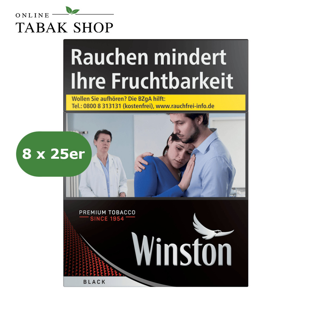 - Die günstigere Packung der Winston Black Zigarette mit einem Preisvorteil je Zigarette von bis zu 3,9% gegenüber der OP Packung